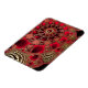 A sparkling fractal design with ornate spirals of dark and vivid red, overlaid with gold filigree like metallic seashells and studded with glittering rubies.
