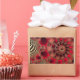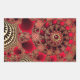 A sparkling fractal design with ornate spirals of dark and vivid red, overlaid with gold filigree like metallic seashells and studded with glittering rubies.
