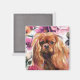 'Ruby' Cavalier chien art aimant Un petit morceau d'art coloré sur votre réfrigérateur avec ce 'Ruby' cavalier roi charles spaniel magnet avec arrière - plan floral.