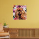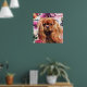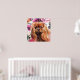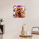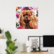 Ruby Cavalier king charles spaniel dog art print with soft colouring floral background. Vintage style 24 x 24 inch