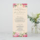 Elegant and modern ruby pink peony floral wedding program with painted watercolor flowers in pink and peach and lush green foliage against an ivory background. Simply add your wedding details. If you need any help or matching products, please contact us through our store. We're happy to help you make your wedding the most beautiful day!