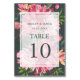 Ruby Pink Peony Floral Botanical Wedding Table Number