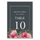 Ruby Pink Peony Floral Botanical Wedding Table Number