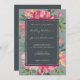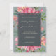 Ruby Pink Peony Floral Green Wedding Invitation