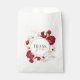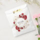A beautifully designed favour bag featuring ruby-red roses and soft white florals,