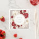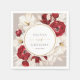 Elegant wedding napkins adorned with ruby-red roses and soft white florals,