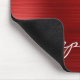 This trendy mouse pad features a ruby red faux brushed metal foil background. Personalize it with your name in white handwriting-style brush script.
