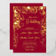 Elegant ruby red and real gold foil abstract floral wedding invitation. All wording can be personalized and the ruby red background colour can be changed to another colour.