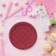 Elegant ruby red snowflake pattern on Christmas party paper plate. (see matching napkins & beer mats etc)