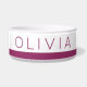 Beet Red, Gemstone Jewel Tone Inspired rich purple-red personalized ceramic dog or cat bowl for water and food, with your pet's name on the side and a bright colourful modern minimalist stripe. The trendy thin sans-serif font is classic and trendy and will always be chic and elegant for years.