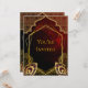 This stunning invitation design captures the essence of luxury & elegance with a ruby red backdrop and intricate gold accents. The intricate gold peacock feathers & arches inspired by the East add a touch of exotic beauty to the design. Perfect for a wedding or special event, this invitation symbolizes good fortune & everlasting love. Make a statement with this exquisite invitation that will surely impress your guests & set the tone for a truly unforgettable celebration.