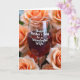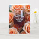 This greeting card shows a clear drinking glass centred in the scene, surrounded by layers of soft roses in blush, cream, and muted autumn tones 🌼. The background flowers fade into a gentle blur, creating a hazy halo that keeps attention on the glass and the cozy closeness of the arrangement. Inside the bowl of the glass, a deep ruby drink catches the light, and the red glow seems to echo the warmth of the petals like a quiet toast between two people ❤️. Across the front of the glass, a short dedication appears in flowing cursive-style lettering, standing out in bright white. The words sit roughly mid-glass, following the curve of the bowl so the message feels nestled into the scene rather than floating above it. Soft, diffused lighting brings out tiny highlights on the rim and stem while the rose petals look velvety and gently shaded. The final look features a bright white message centred on the glass against the rich red liquid, framed by softly blurred roses in pale pink and cream.