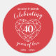 Ruby fête ses 40 ans d'autocollants d'anniversaire d'amour. Simple contour carré effet ligne d'art graphique rubis rouge et blanc 40th Ruby Mariage Anniversaire autocollants ronds. Customisez avec vos propres détails de la fête de mariage de quarantième rubis. Le 40e anniversaire est traditionnellement associé aux rubis et le coeur symbolise l'amour. Graphiques et design par Sarah Trett pour www.mylittleedenweddings.com sur zazzle.