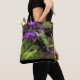 Tote bag featuring a beautiful female ruby-throated hummingbird sitting in purple flowers. Photo taken by Karla Chrast.