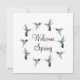 Pretty "Welcome Spring" card featuring Ruby-throated hummingbirds on a white background.