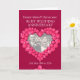 Customize this ruby wedding anniversary card with your parents, photo, year of marriage and inside words. Example reads: Dearest Mum & Dad on your Ruby Wedding Anniversary 25th May 1984 to 2024. Red ruby heart effect art and design by Sarah Trett.