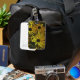 Pleasantly surprised at the quality of the luggage tag. It was exactly as shown and my daughter will be pleased. The address label on the back of the luggage tag was neat and clear.