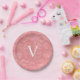 Ruddy Pink Monogrammed Watercolor Paper Plate