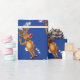 Rudolph Reindeer Christmas lights. Blue Wrapping Paper