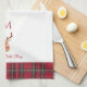 stylish red black tartan,rustic christmas custom monogram,personalized customized kitchen towel,personal name check pattern,scottish checked chequered dishcloth,add your own royal text,merry xmas family surname,fancy plaid initialled initial,classic traditional rudolph reindeer,christmassy xmasy reindeers sleigh