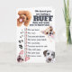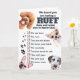 Send a boss, friend, employee or loved one this team card featuring a poodle; chihuahua; French bulldog and Dalmatian peeking in on a block checklist that has red ticks in it showing a list of what you can do to help them get through a rough or difficult period in their lives. The front reads, we heard you are having a ruff time and want you to know that ...... followed by your own personalized list of caring thoughts and offers of assistance. Personalize both the front and back to suit the occasion and let someone know you really do care. Ideal for a divorce; operation; if someone is feeling blue; the loss of a loved one or a general pick me up because we love you card.