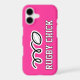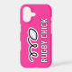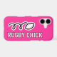 Rugby Chick Personalized pink iPhone 17 Case. Custom Sports phone cover.