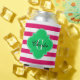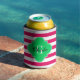 Classic Preppy Horizontal Rugby Stripes, Name Initial Monogram in a Emerald Green Quatrefoil Frame