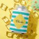 Classic Preppy Horizontal Rugby Stripes, Name Initial Monogram in a Pineapple Yellow Quatrefoil Frame