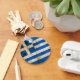 The flag of Greece is made to look aged and rugged. Rough textures cover the flag giving this keychain a grungy feel. This ragged Greek flag is a fun and stylish way to show your patriotism.