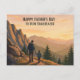 A watercolor-style Father's Day postcard featuring a rugged mountain landscape