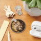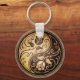 This rough and rugged yin yang design features two stylized tribal roses. Intricate swirls decorate both sides of this traditional symbol creating a delicate pattern. The two flowers flow from the bottom of the teardrop on either side with leaves growing from the stems. Rough textures and natural brown colors give the design the look of being an ancient artifact. This unique yin yang makes a stunning and stylish keychain design.