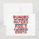 Les rumeurs sont propagées par des haineux, diffusées par des imbéciles et acceptées par des idiots.