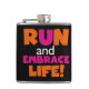 Run and Embrace Life Orange Pink Text Hip Flask