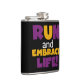 Run Embrace Life Purple Yellow Hip Flask