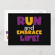 If you love to run, run 5Ks, 10Ks, half marathons, or marathons, you'll love this colourful text design in purple and yellow that reads Run and Embrace Life! Run and Embrace Life T-shirts, hoodies, magnets, buttons, cards, stickers, key chains, and lots of other items for runners who love a bright, colourful running design!