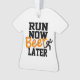Funny ornament says in black and brown letters "Run Now Beer Later". The back can be changed to your name and year or whatever you like. What a great gift for the runner in your life! Put a SMILE on their faces!