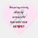 Your legs are heavy, your lungs are bursting, but the race isn't over yet. Determination will keep you going as you run from your heart. The text is in black with a red heart, and there is a pale pink background with the silhouette of a runner.