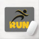 Running T-shirts, mugs, bags, keepsakes, tank tops, hoodies, and other apparel and gifts for runners featuring a black silhouette runner and yellow text that reads RUN. These RUN apparel and gift items are great for anyone training for a 5K, anyone who just loves to run, or someone who has already accomplished several marathons!