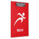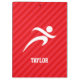 Cool, colourful runner, running, run, marathon runner, sprinter, long distance, track coach, sports design on red, scarlet red diagonal stripes pattern. Perfect gift for baby, toddler, kids, children, teens, or adults! Personalized the design by adding a child's name or custom text with athletic, sporty look sports white font. Visit our store, Birthday Party House, for more great customizable boy and girl products!