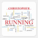 The word Running is at the heart of many words that reflect the joy, commitment and sport of running. Colours and different fonts set off the various words. The runner will enjoy reading the many aspects of running that they enjoy.
