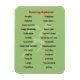A fun magnet with an alphabet for runners. 26 letters of the alphabet with a running word or phrase for each one. In black and red lettering on a soft green background which also has the silhouette of a runner.