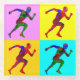 Multi-colored silhouettes of runners on the background of multi-colored squares