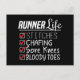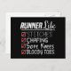 Runner's Life Checklist - Stitches, Chafing, Sore Knees, Bloody Toes! A funny running quote to make you laugh while trying to break personal records. Cute for race training! > Cool idea for a trail run, half or full marathon runner, coach, or team trainer. > Customizable: Add your own custom name or text.