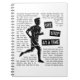 A black and white notebook design and write up that uses the designer's thoughts on how running toward the endpoint is comparable to going after goals in life. The meaningful text forms a backdrop to the striking black silhouette of a fit and lean male runner in shorts. Great as a motivational and encouragement design for someone to have the tenacity and perseverance to take things one step at a time toward their goals.
