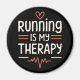 Running is my therapy magnet. Funny runner marathoner quotes for women mental health. Run addict jogger long run jokes cute heartbeat aesthetic gifts.