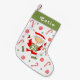 Running track and field Christmas stocking holiday gift featuring runner Mrs. Claus racing. To personalize edit text to add runner's name.