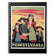 Vintage Depression-Era WPA travel poster "Rural Pennsylvania" showing Pennsylvania Dutch people and a farmland village landscape.