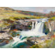 "Rush of the Dales" – A Yorkshire Landscape. This artwork captures the unstoppable force of water cascading through the rugged Yorkshire Dales, painted in broad, expressive strokes. The bold brushwork conveys both the serenity and power of nature, where soft rolling hills frame the dramatic plunge of a waterfall that has shaped the land for centuries.