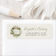 Le côté gauche de cette étiquette d'adresse de retour mariage rustique présente les initiales monographiques de la mariée et du marié en vert olive, entourées d'une couronne d'aquarelle d'olives et de verdure. Ajoutez vos noms en écriture manuscrite vert olive et votre adresse en police sans serif gris charbon sur un arrière - plan beige.
