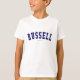Russell! Is your name Russell? Or do you have a husband, boyfriend, male family member or male friend named Russell? If so, this "Banner" shirt is exactly the gift that you're looking for! The design features "Russell" in arched navy lettering across the chest in the classic College font.
